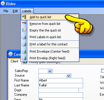 contact that you view, you use the above option to add to the list.to print the label list, simply select the print labels in quick list.
