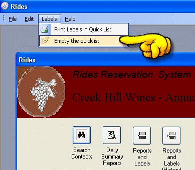 the first step in using the quick labels to print more then one contact is to "empty" the quick label list. this is only a list, and thus emptying this list does not actually delete, or harm, or do anything to and thus emptying this list does not actually delete, or harm, or do anything to your data.
