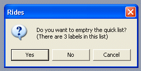 from the main menu, you choose the label menu, and then select "empty the quick list"