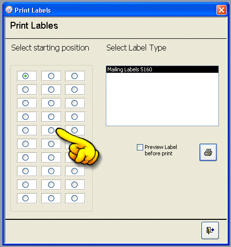 when you select the above option, you are then prompted for what position to print the label out on the sheet.