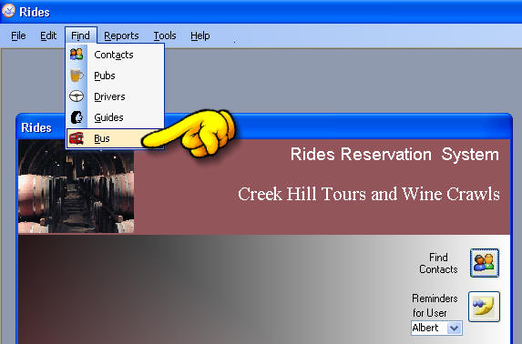 to modify information about a bus used in tour simply go find->bus