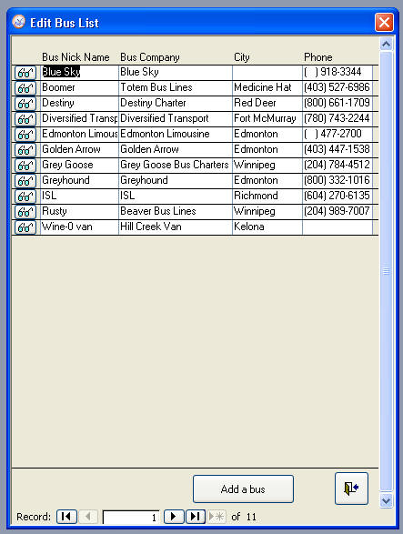 to add a new bus, simply click on the add a bus button