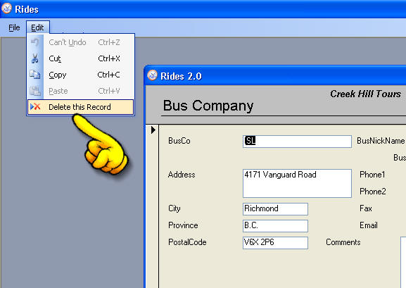 then use edit->delete this record